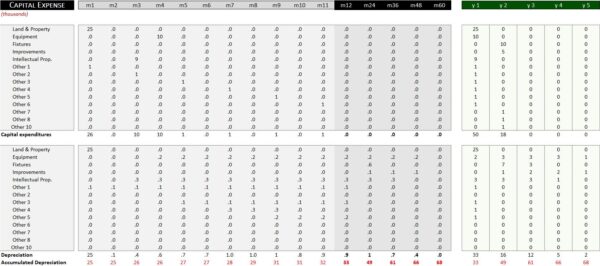 - Supporting tables for Capital Expense & Line of Credit