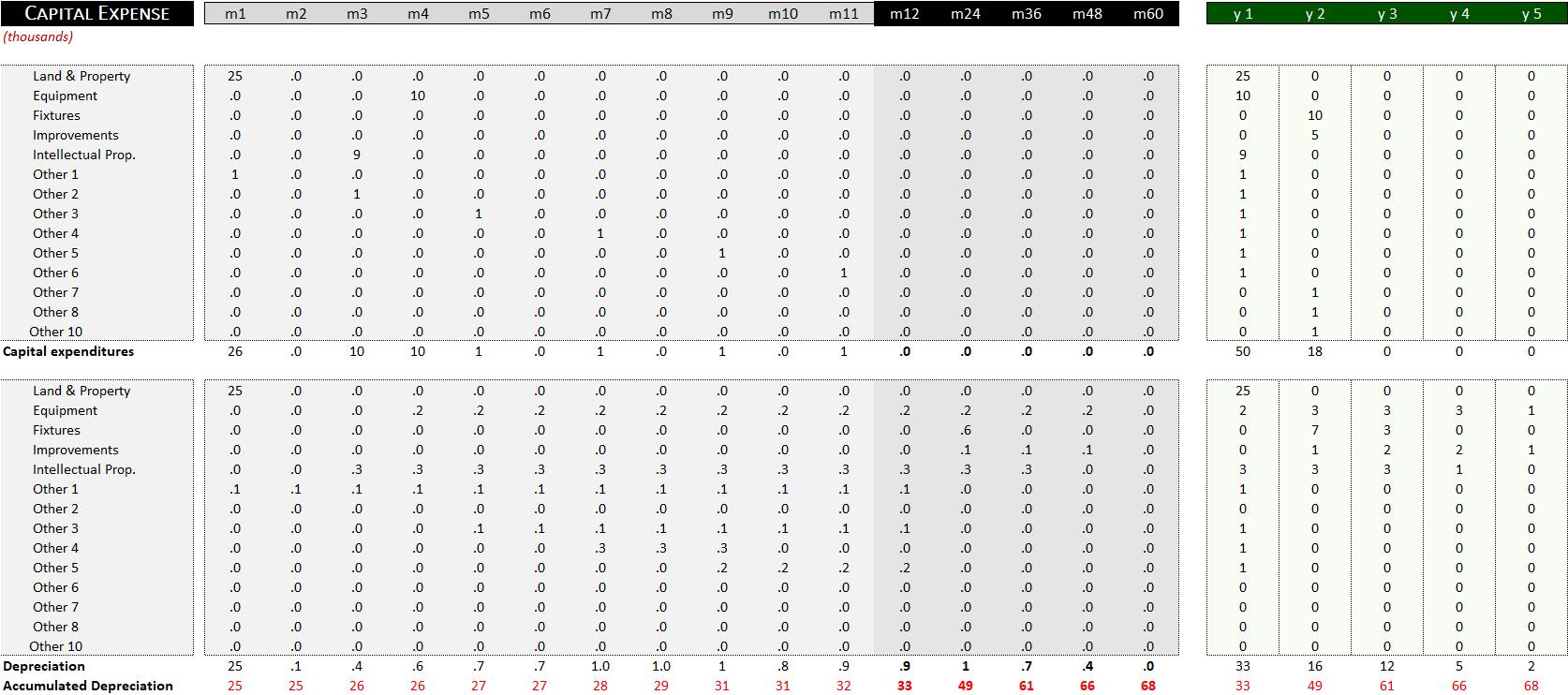 - Supporting tables for Capital Expense & Line of Credit