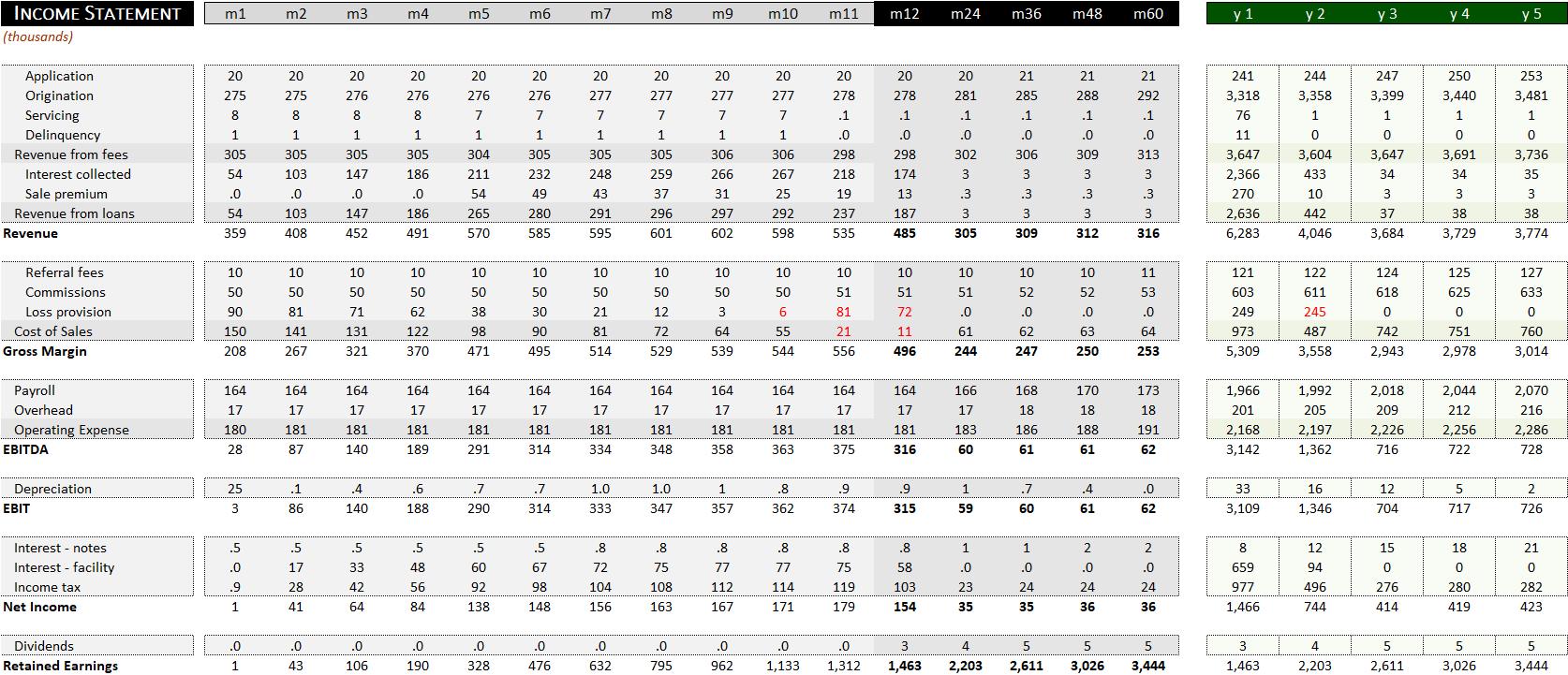 - GAAP-aligned, 60-month Financial Statements